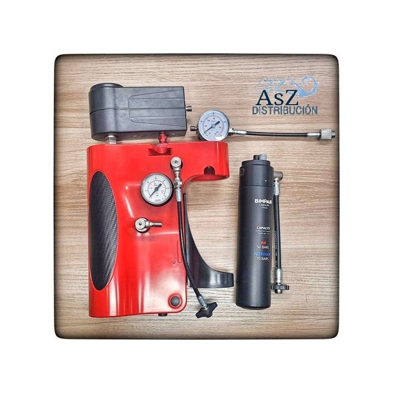 Con el AIR PRO PACK, recarga tus cápsulas con aire comprimido usando el cargador eléctrico E-way. En tan solo unos minutos, tu cápsula se cargará con 50 bares de aire comprimido. Funciona con una toma de mechero de 12 V, ideal para viajes, o con la red eléctrica de 220 V del taller o tienda. Apagado automático una vez cargada la cápsula.