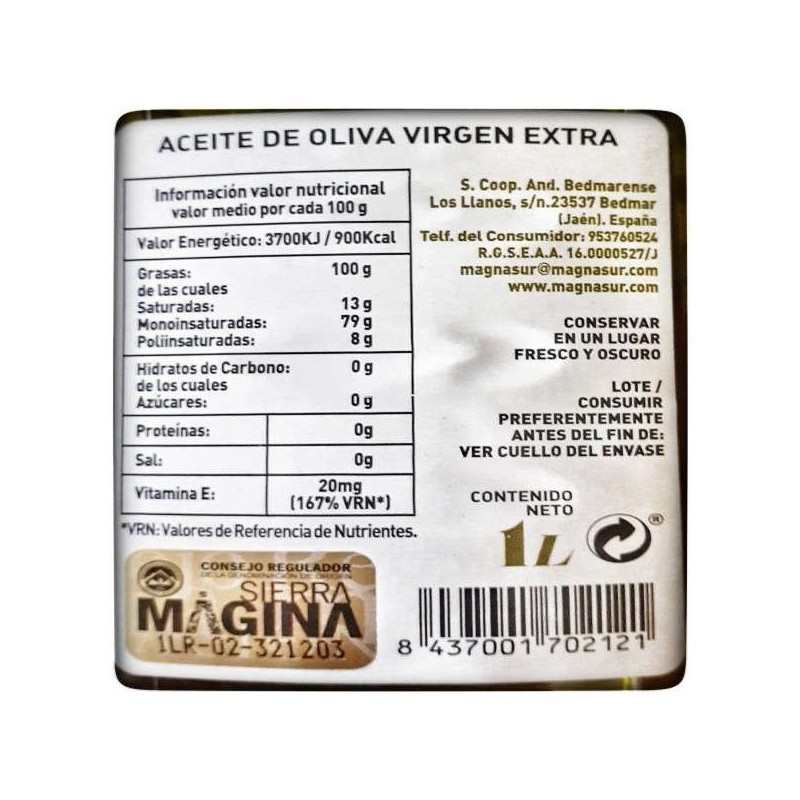 Aceite de oliva de categoría superior obtenido directamente de aceitunas y sólo mediante procedimientos mecánicos.