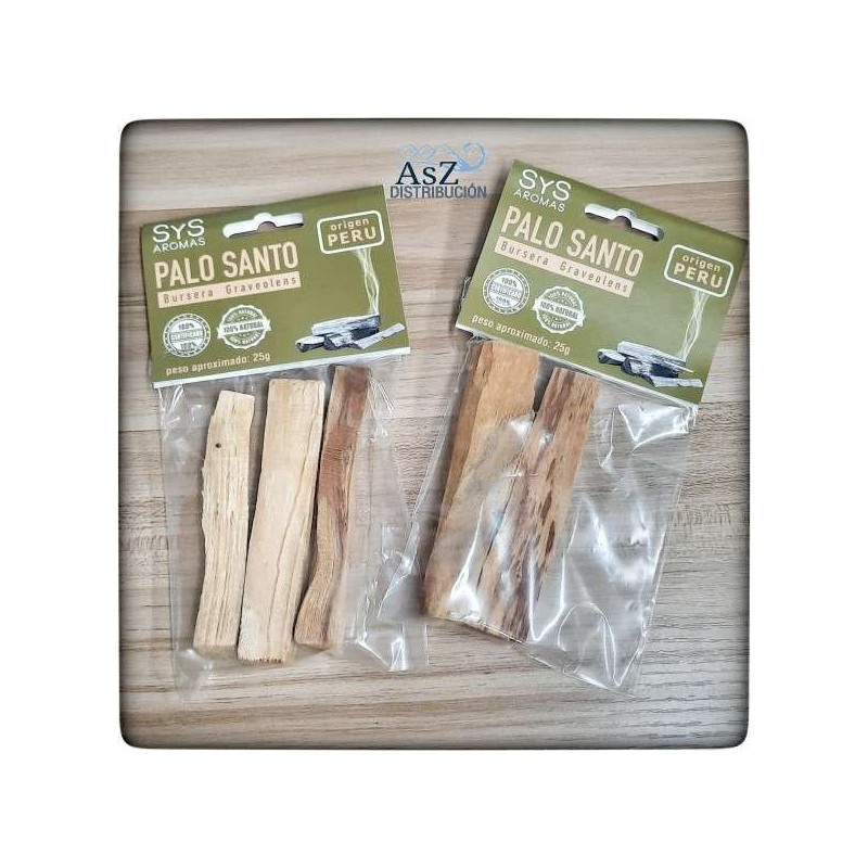 Los palitos de Palo Santo (Bursera Graveolens) de SyS son 100% naturales y certificados, originales de Perú. Tras haber sido recogidos pro agricultores peruanos de forma artesanal, sin empleo de maquinaria industrial, permanecen secándose durante 4 años de forma natural. Cada palo se puede encender más de 50 vece.