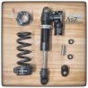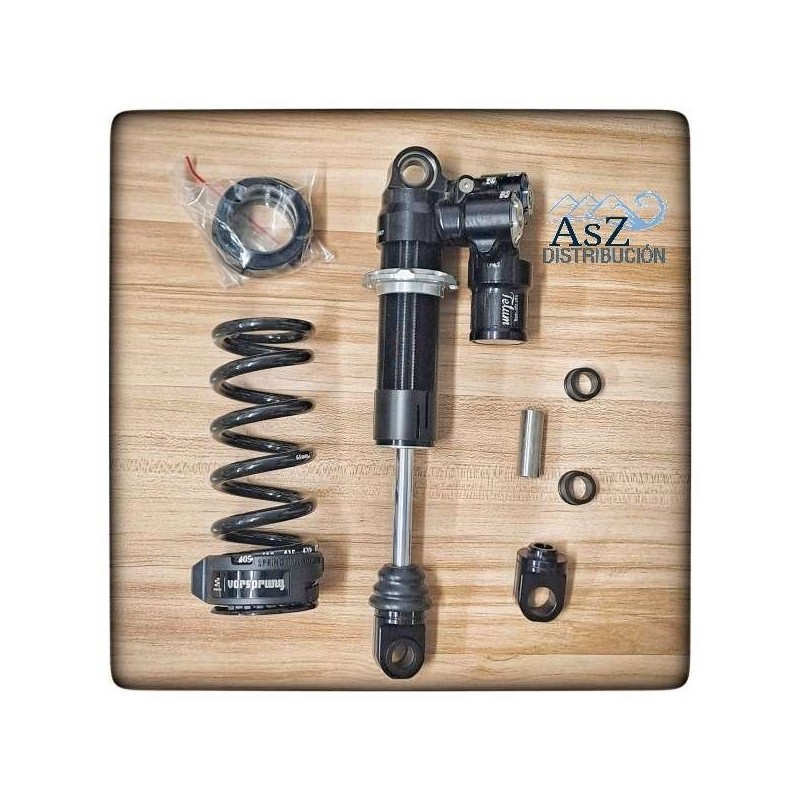 Rebote ajustable, compresión de alta/baja velocidad, fondo hidráulico y tasa de resorte helicoidal.