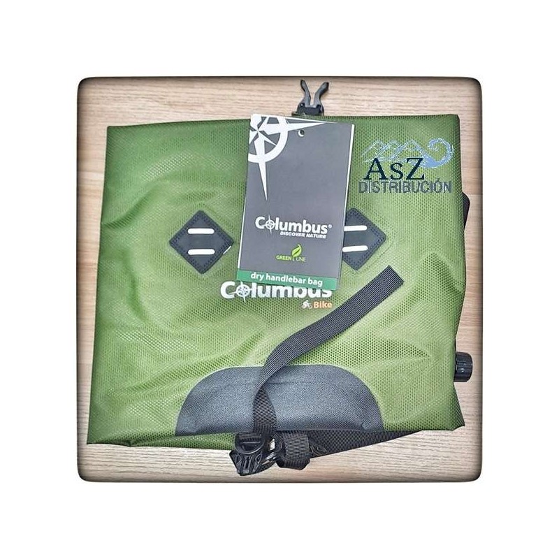 Ver más grande Columbus Bike bolsa manillar eco impermeable 9L de color verde es ligera y con capacidad ajustable gracias a sus cierres enrollables en los laterales (hasta 9 l.)