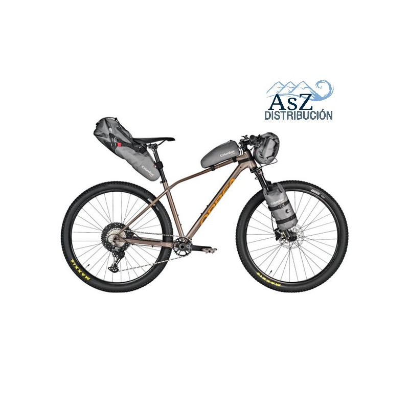 Una bolsa estanca comoda para el bikepacking , ligera y con capacidad ajustable hasta 11l gracias al cierre enrollable y las cintas de compresión.