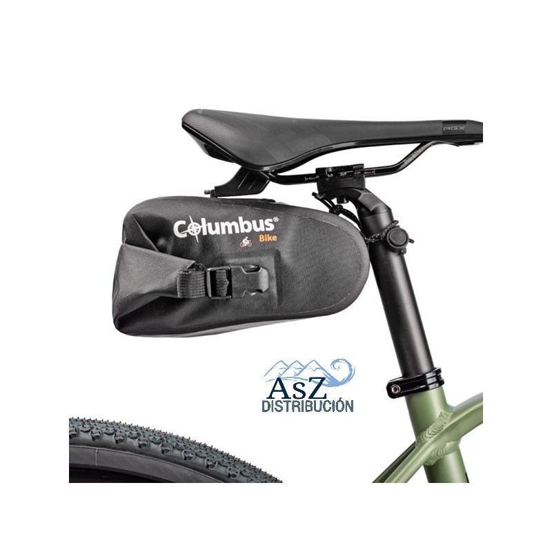 Bolsa Estanca de Sillín para bicicleta Columbus, que gracias a su cierre enrollable, es resistente a las salpicaduras de agua y barro, y es ideal para guardar herramientas, un teléfono móvil…