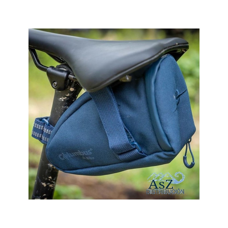 Bolsa de Sillín RPET Columbus, es una bolsa de sillín perfecta para lo esencial de cada día, como llaves, herramientas, geles...
