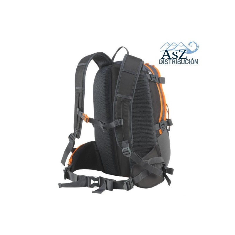 Equipada con espalda con sistema de flujo de aire y cinturón y tirantes acolchados que la hacen más confortable y cómoda. El reglaje de tirantes, cinturon y la cinta de pecho, así como las cinchas de compresión permiten el ajuste de la mochila al cuerpo del usuario estabilizando la carga.