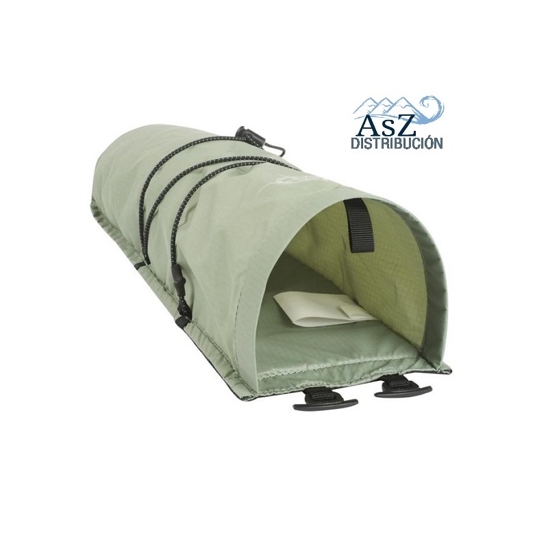 Es resistente al agua y al barro gracias a su tejido de nylon ripstop 40D reciclado (una cara siliconada y la otra recubierta de PU 2000mm),