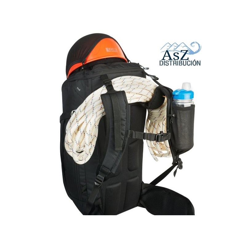 Para transportar el material técnico dispone de Porta-piolets, porta bastones, porta casco de red así como dos cintas de compresión regulables a ambos lados para las raquetas de nieve o eventualmente skis. Sobre los tirantes las cintas de transferencia de carga permiten cargar una cuerda en caso necesario.
