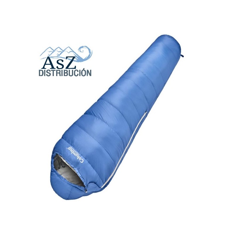 Ver más grande Saco de Dormir de Pluma Pamir 450 Azul Columbus es un saco de pluma de 3 estaciones, ligero y fabricado con materiales reciclados certificados por el laboratorio GRS.