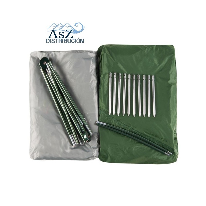 Las dimensiones de la tienda son 90+50x220x92(h) cm. y pesa 1,48 kg.