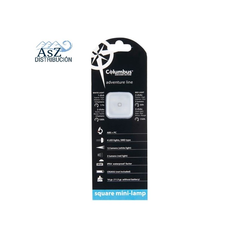 Mini-lámpara Square Blanca Columbus es una mini-lámpara, con luz blanca y roja, multifunción con 4 luces LED SMD.