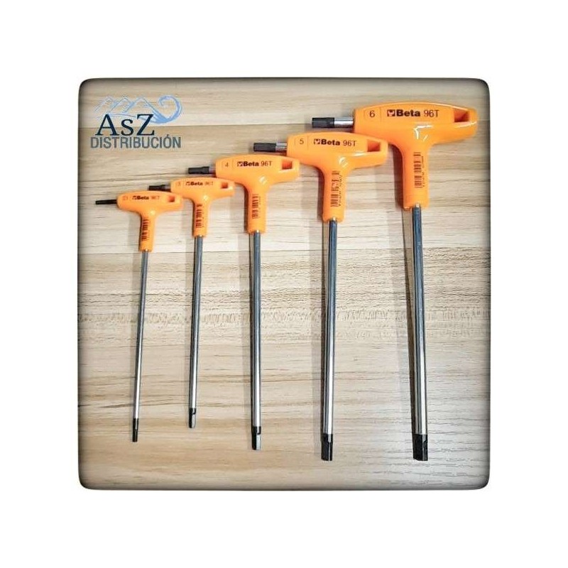 Juego de 5 LLaves Macho Hexagonales acodadas con mango