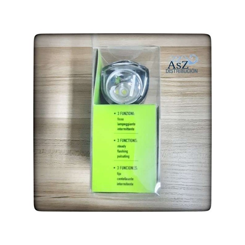 - 1 led blanco - 3 funciones: fijo, intermitente y parpadeo - Funciona con 3 pilas AAA incluidas.