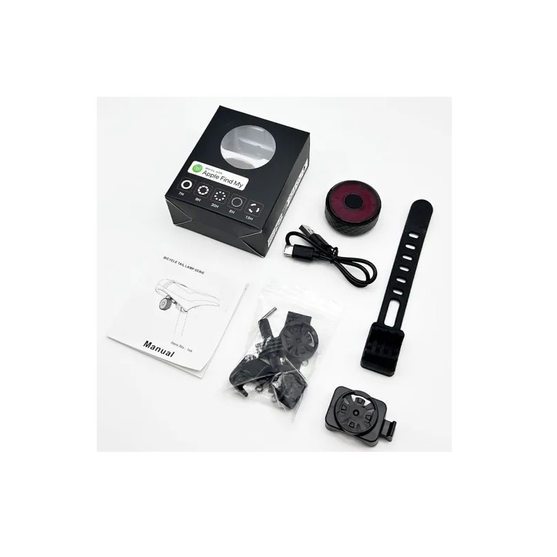 Paquete: 1x Luz T08 TagLight, 1x Cable USB Type C, 1x Soporte paratija, 1x soporte para sillín, 1x Manual de usuario