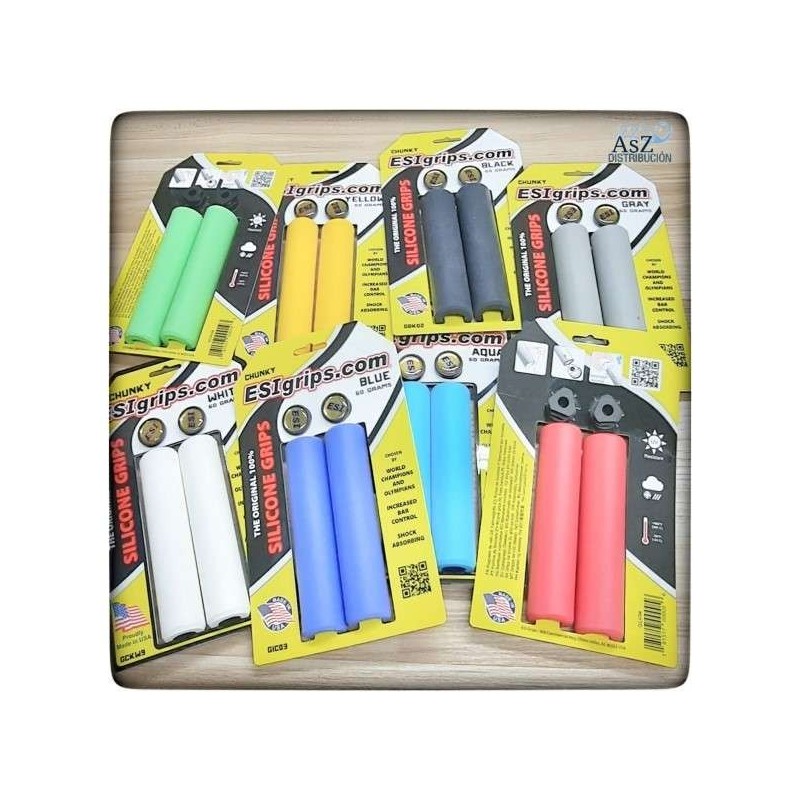 Los Puños ESIgrips Extra Chunky ofrecen un grosor y una absorción extra, son mas gruesos que los Chunky. ESIgrips son los puños que mejor absorben las vibraciones del mercado. ESIgrips Extra Chunky son unos puños de espuma de silicona usados por la mayoría profesionales de la Copa del Mundo por su extraordinario agarre, absorción de las vibraciones, fijación al manillar y resistencia a las inclemencias del tiempo y los rayos UV.